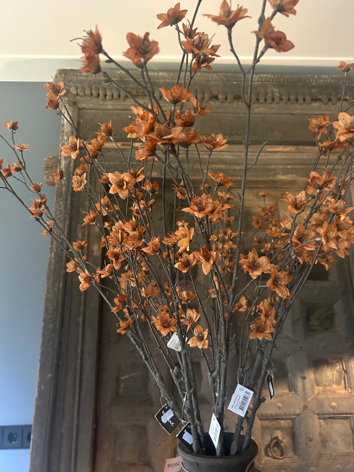 Gebruik meerdere takken samen voor een volle bos of combineer met andere kunsttakken voor een speels en natuurlijk effect. Deze copper kunsttak geeft direct volume en karakter aan iedere ruimte.