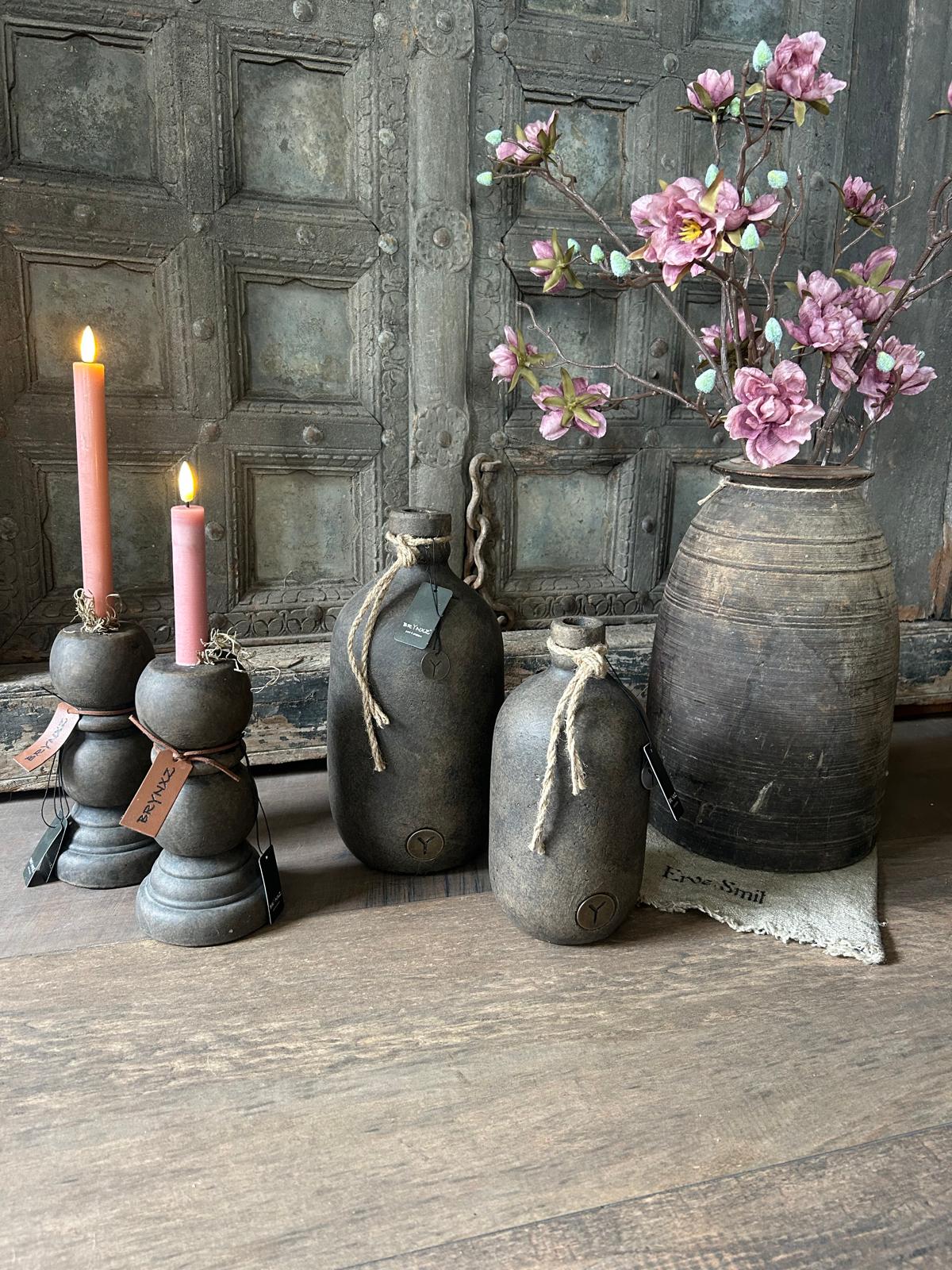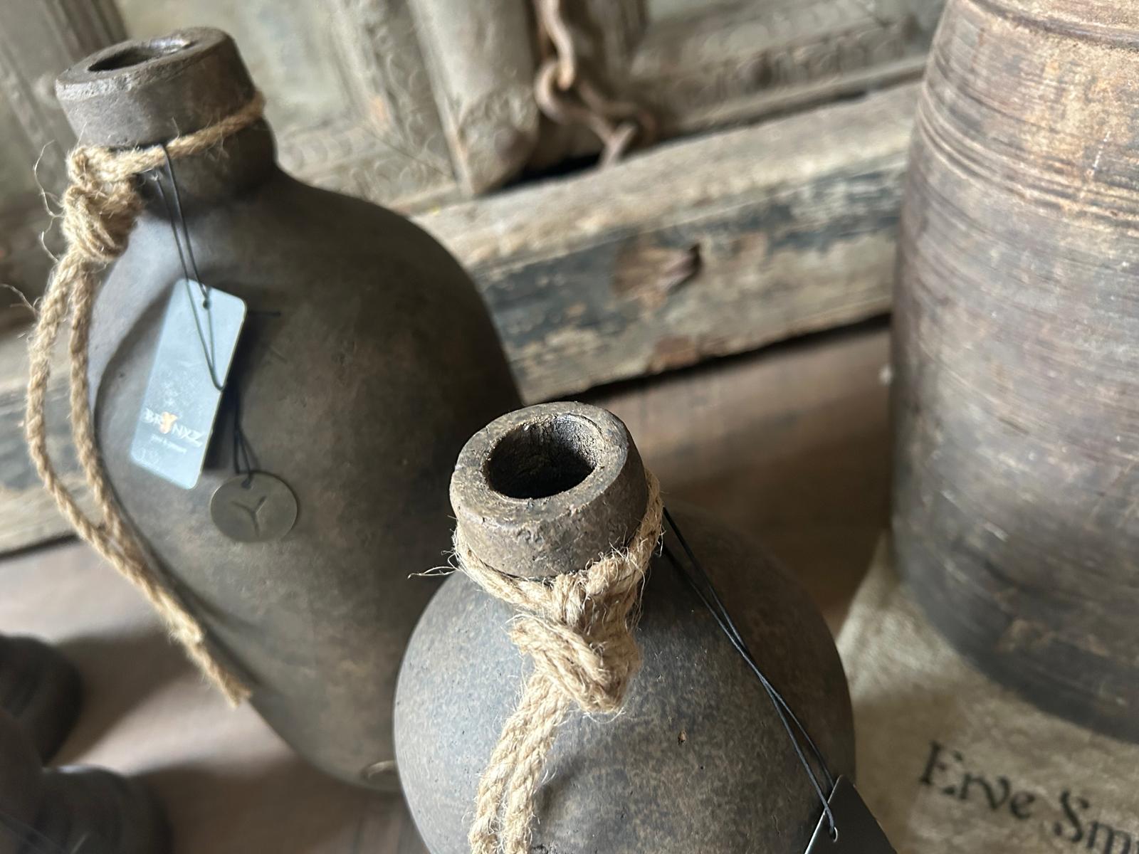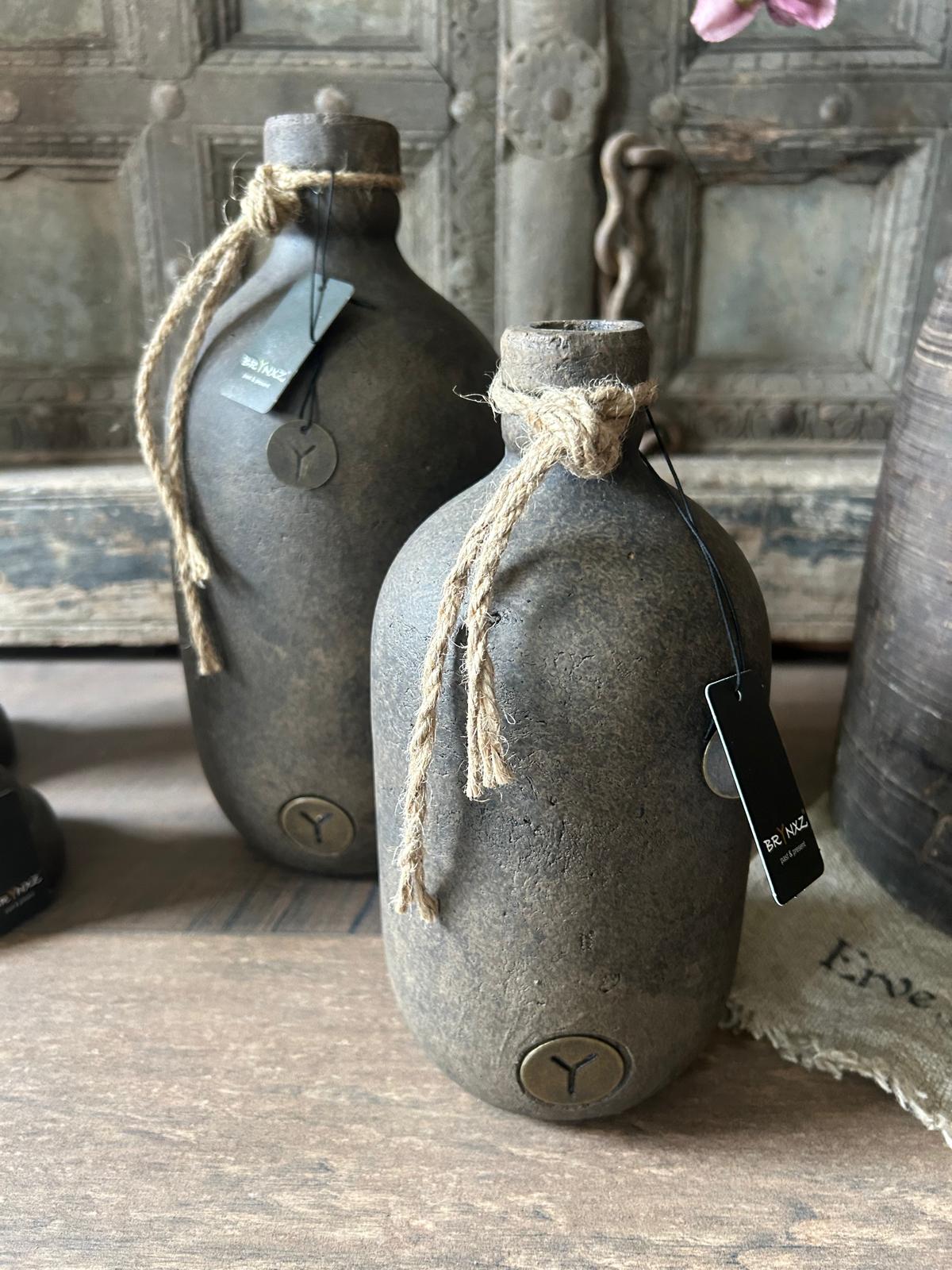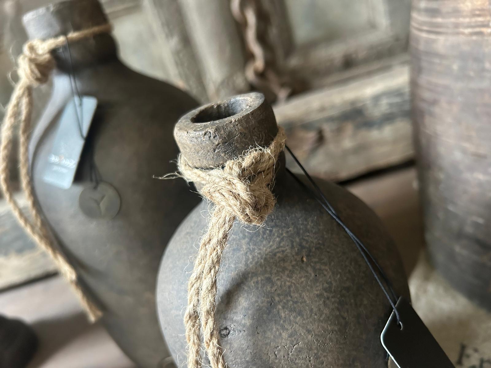 Wat deze fles extra bijzonder maakt, is de subtiele afwerking met een stukje jute touw rondom de hals. Dit natuurlijke detail geeft de pot een speels en authentiek karakter en zorgt direct voor een sfeervol geheel in huis.