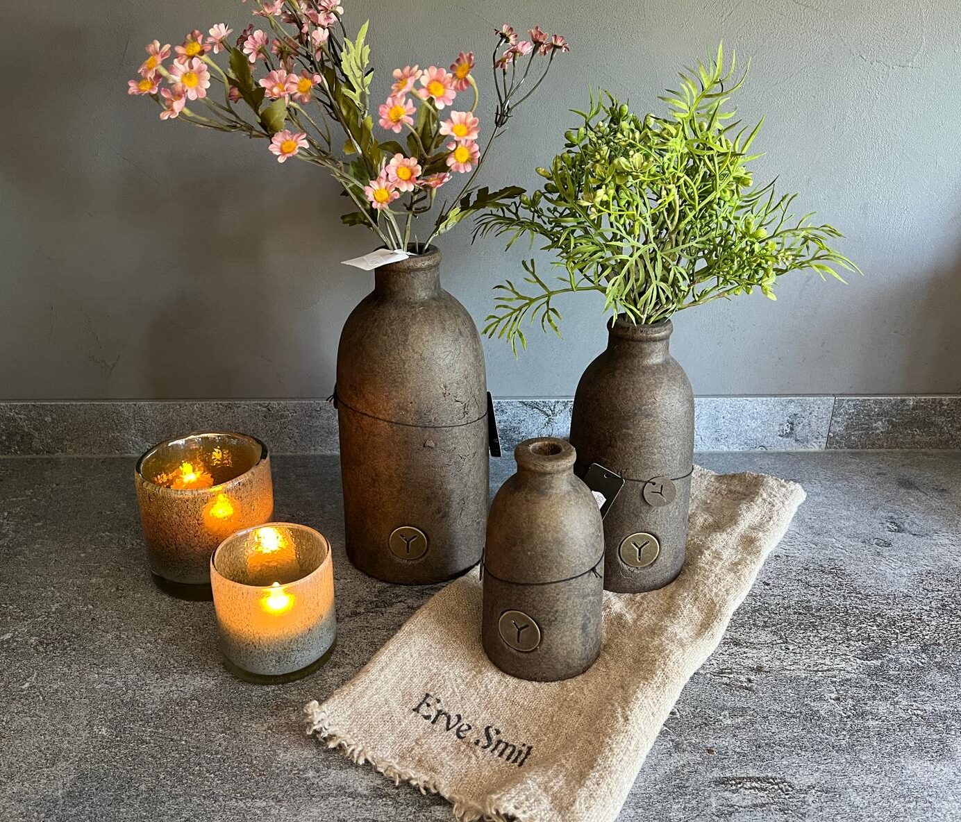Deze kunstbloemen zijn optioneel los bij te bestellen en passen perfect in het flesje voor een romantische, landelijke uitstraling die het hele jaar door mooi blijft.