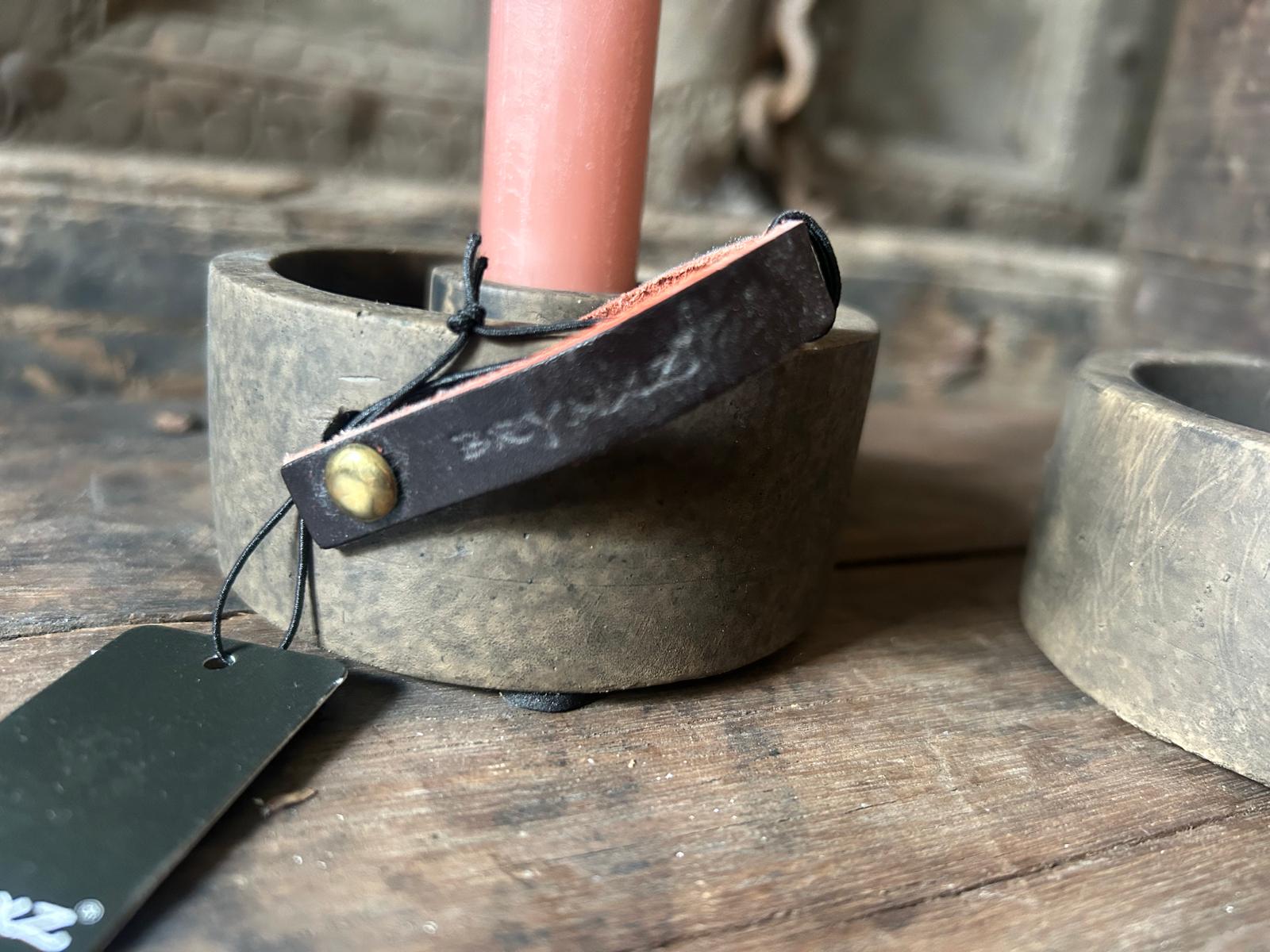 Breng sfeer en warmte in huis met de Brynxz kandelaar voor dinerkaars Majestic Brown. Deze prachtige, ronde kandelaar is een echte must-have voor liefhebbers van een stoer en landelijk interieur. Het compacte formaat, de robuuste uitstraling en het kenmerkende leren label met de opdruk Brynxz maken dit item tot een subtiele maar stijlvolle blikvanger in elke ruimte.