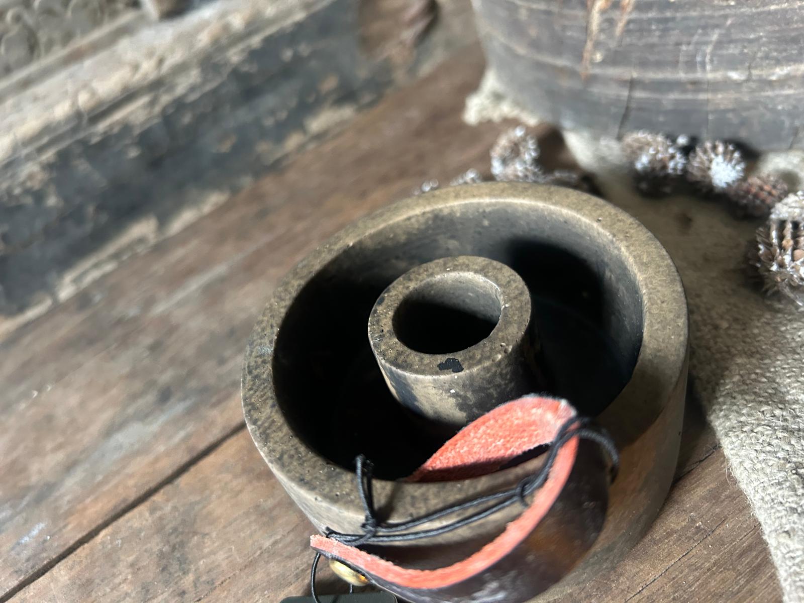 De kandelaar heeft een diameter van circa 9 cm en een hoogte van ongeveer 4 cm, waardoor hij perfect past op een salontafel, dressoir, vensterbank of sfeervolle eettafel. Dankzij het tijdloze design combineer je deze kandelaar moeiteloos met verschillende woonstijlen zoals industrieel, landelijk of modern.