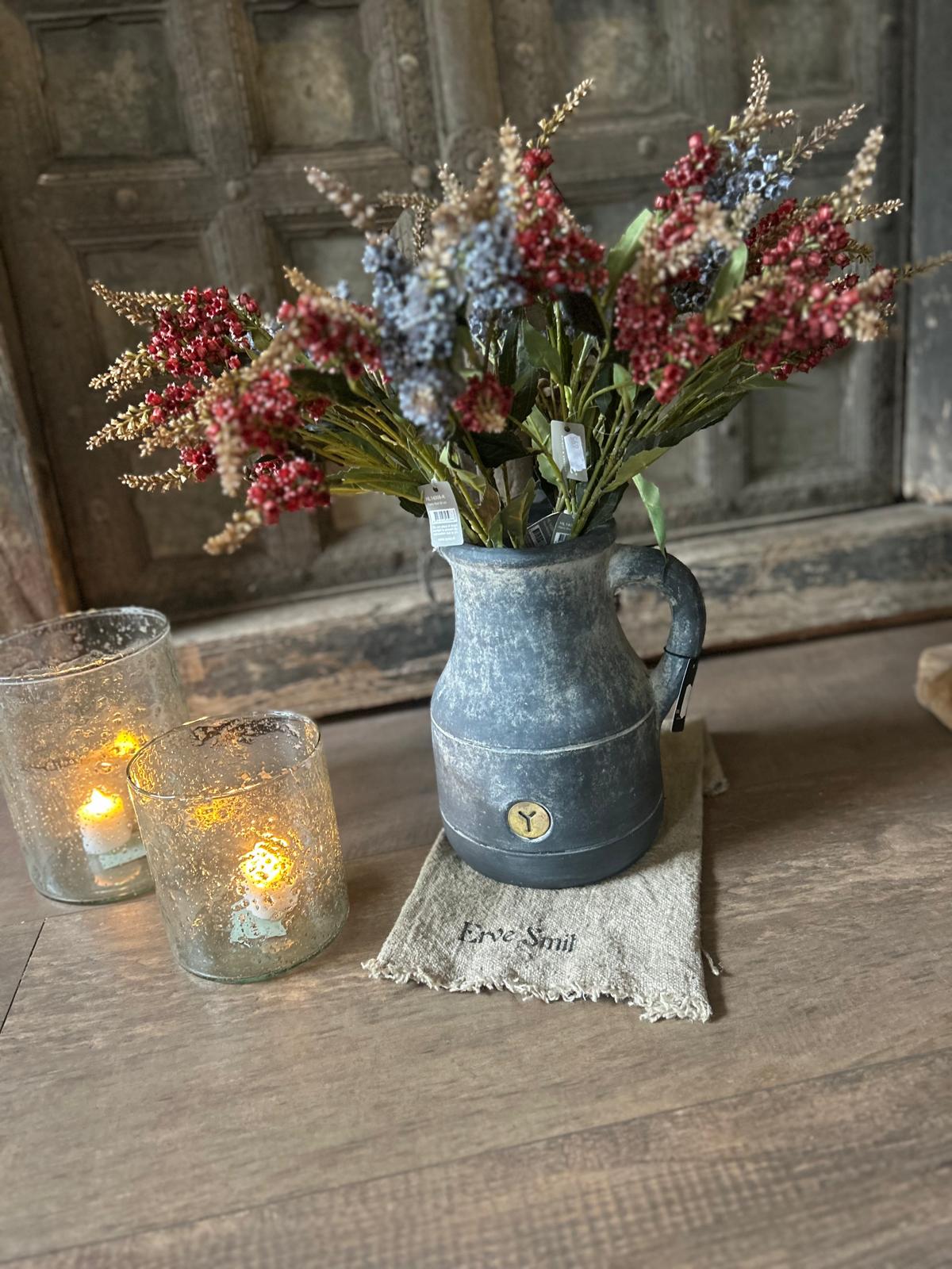 Voor stylinginspiratie hebben we de kan op de foto opgevuld met twee verschillende kleuren Sylxz Pieris, namelijk Blue en Red. Deze planten zijn optioneel los te bestellen via onze webshop: