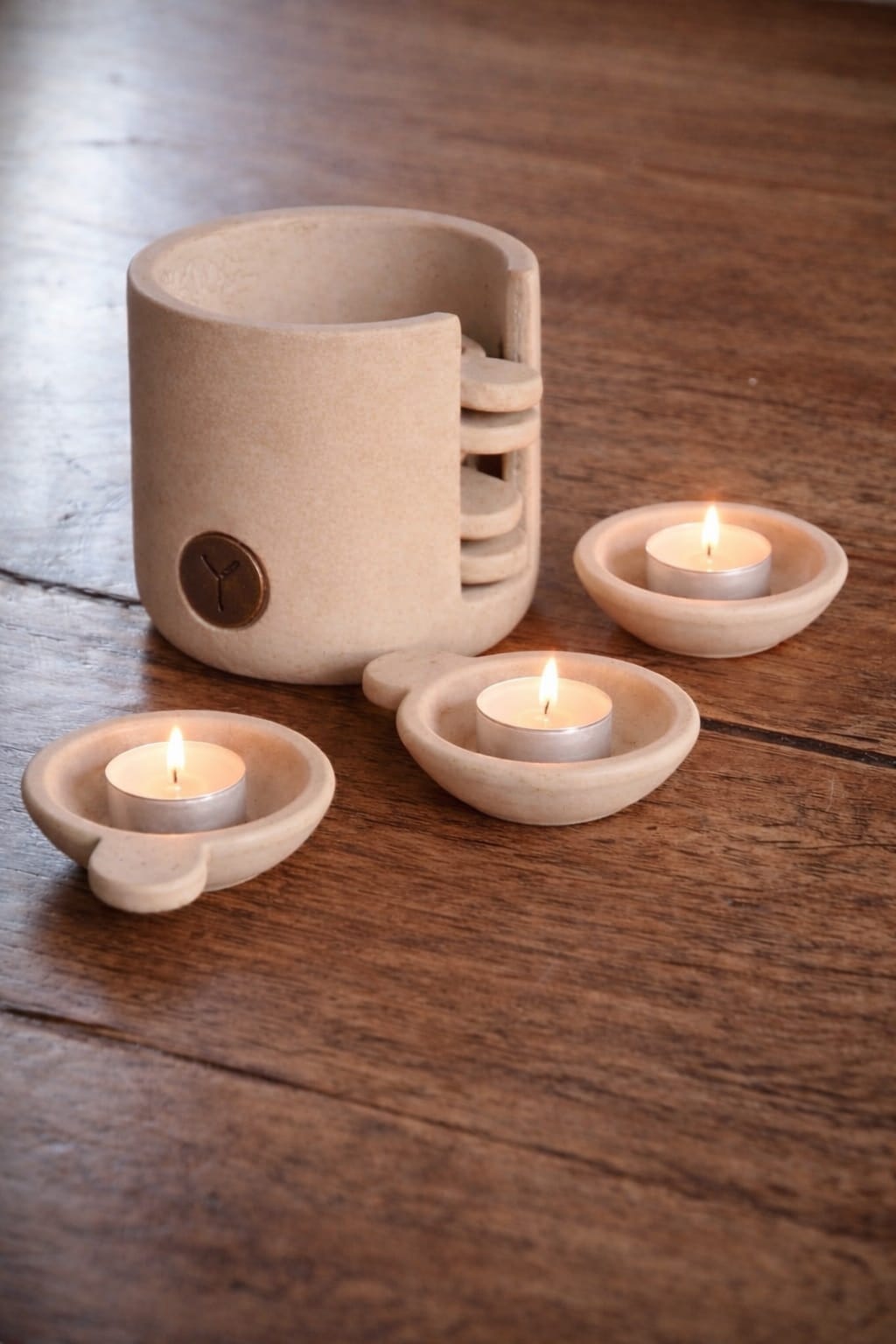 Brynxz Set of 6 Cups in Holder Majestic Baupe – Landelijke Woondecoratie met Sfeervolle Uitstraling ✨🕯️