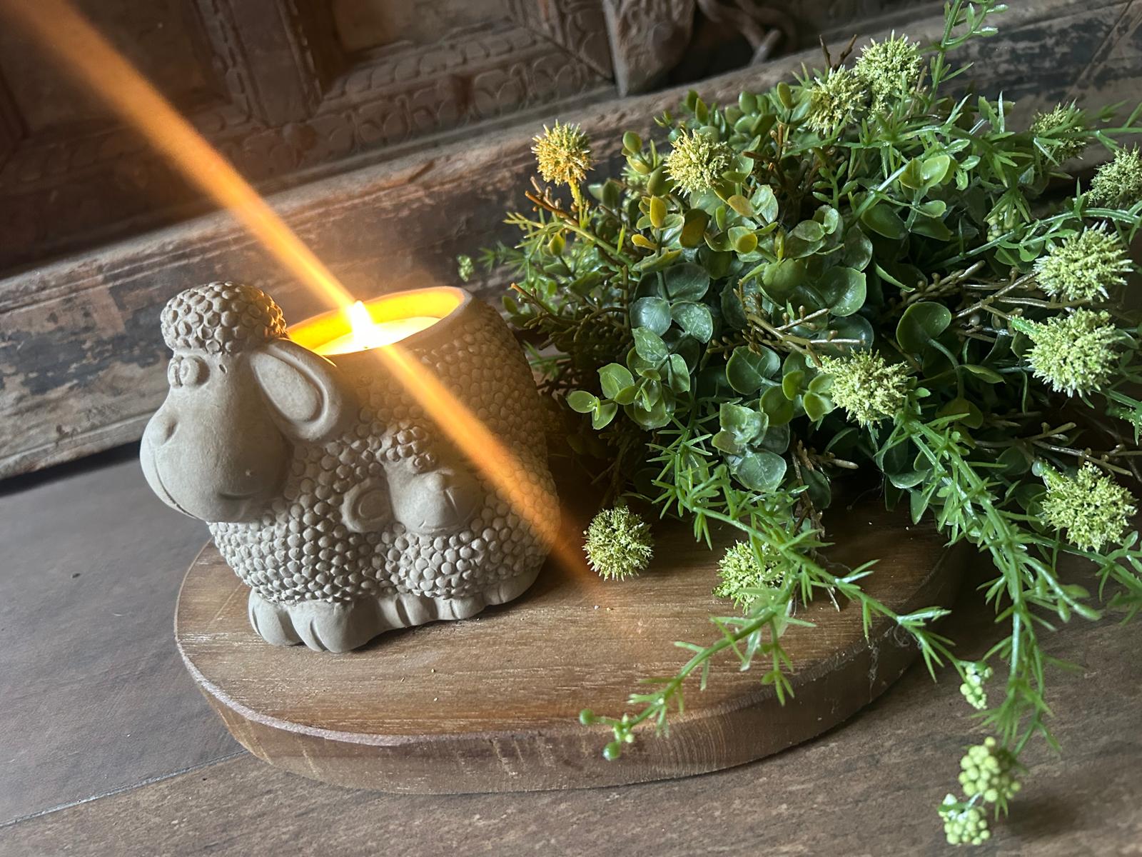 Brynxz Tealightcup Sheep Majestic Taupe D.14 H.13 – Sfeervolle Waxinelichthouder voor een Landelijke Sfeer