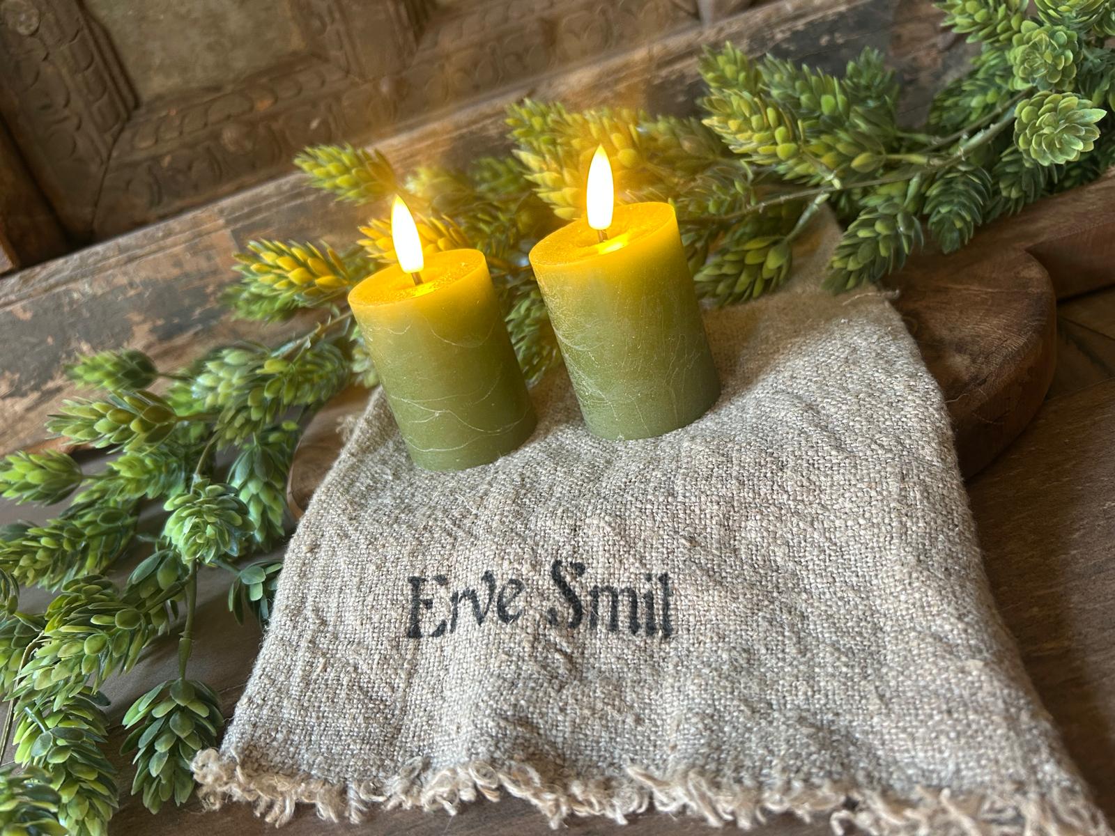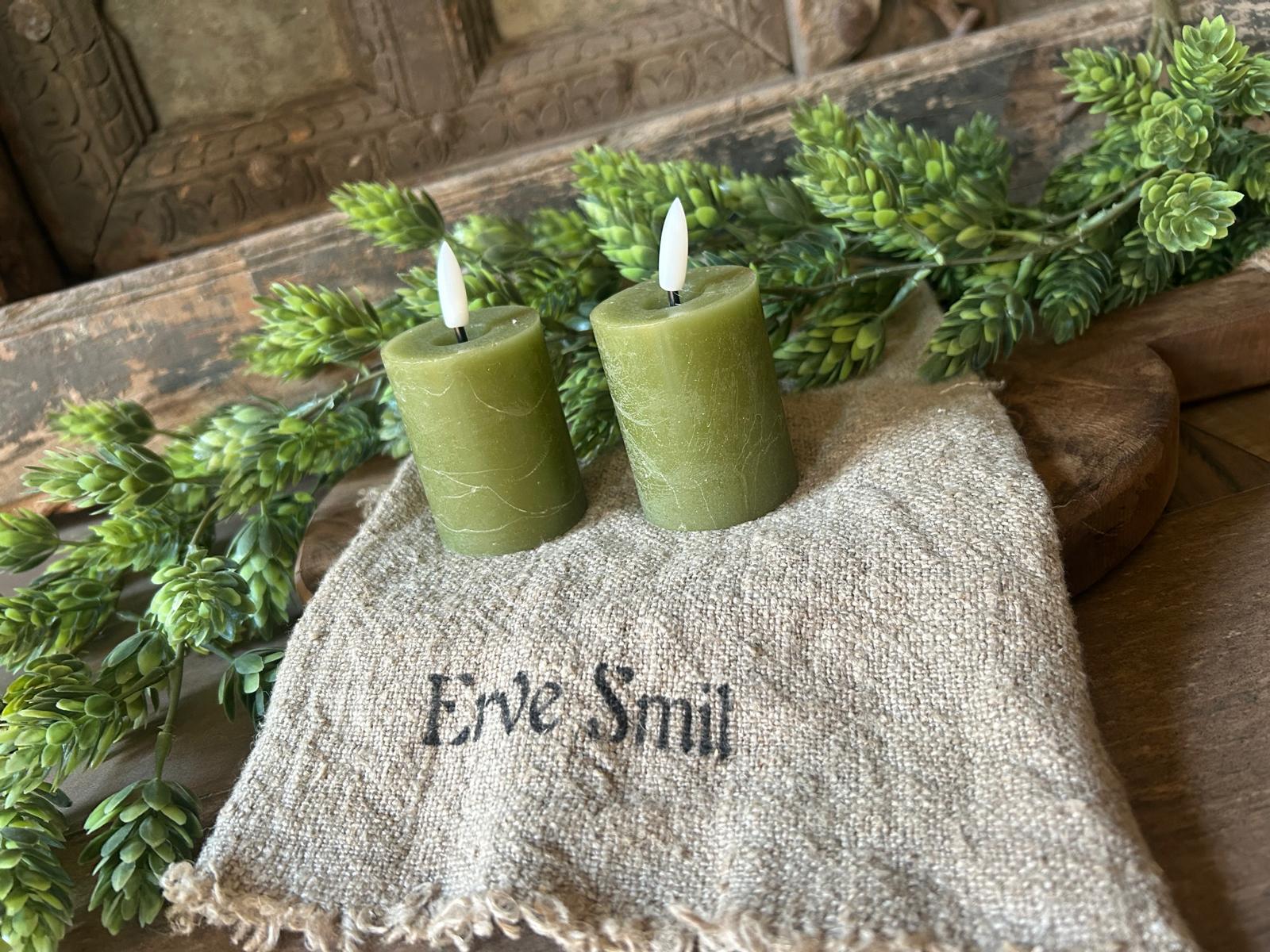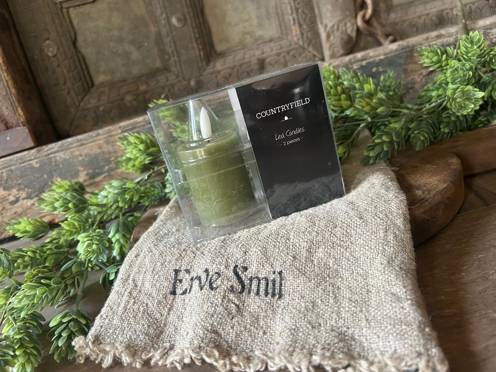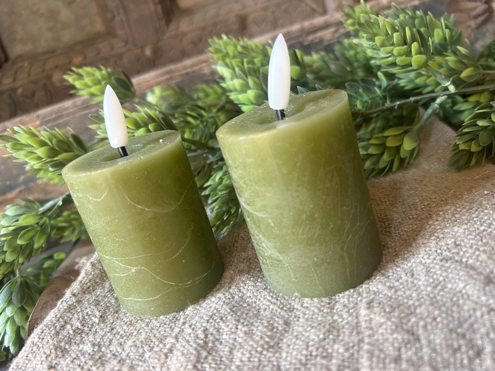 Creëer warmte, rust en gezelligheid met de Countryfield set van 2 groene LED stompkaarsen en geniet elke dag van een sfeervol interieur – zonder zorgen.