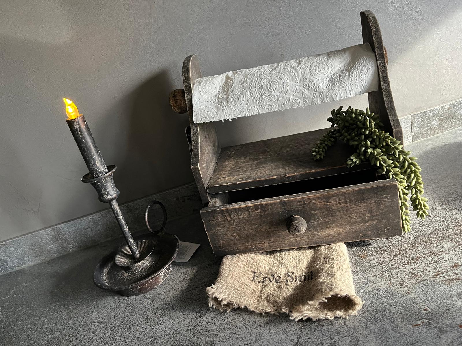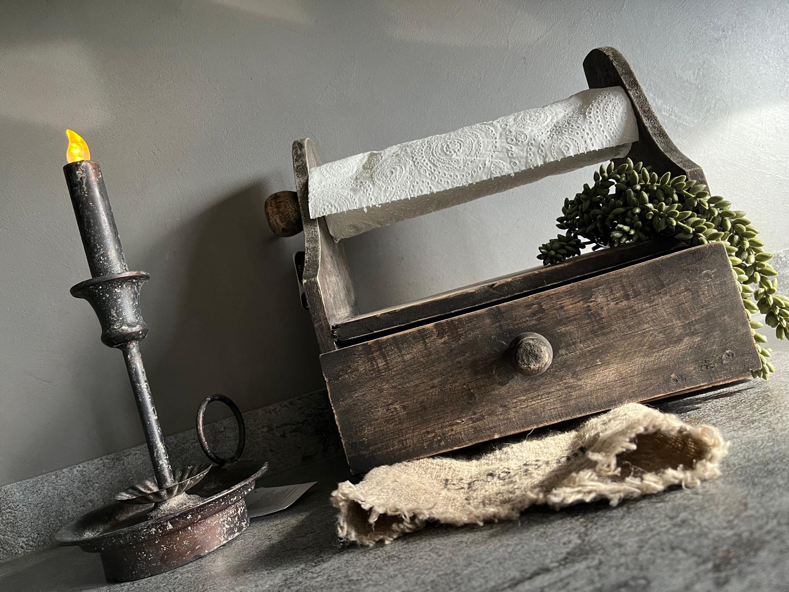 Landelijke Houten Keukenrolhouder – Handgemaakt & Sfeervolle Eyecatcher voor de Keuken
