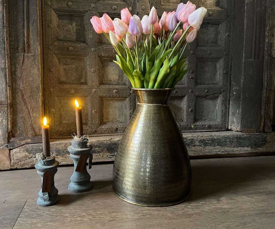 Wat deze vaas extra bijzonder maakt, is de mogelijkheid om hem te vullen met prachtige kunsttulpen. De kunsttulpen voegen niet alleen een kleurrijk accent toe, maar ze brengen ook het hele jaar door een vleugje lente in huis. Of je nu kiest voor een assortiment van levendige kleuren of juist voor subtiele pasteltinten, de kunsttulpen zullen de vaas transformeren tot een levendig en sfeervol kunstwerk.