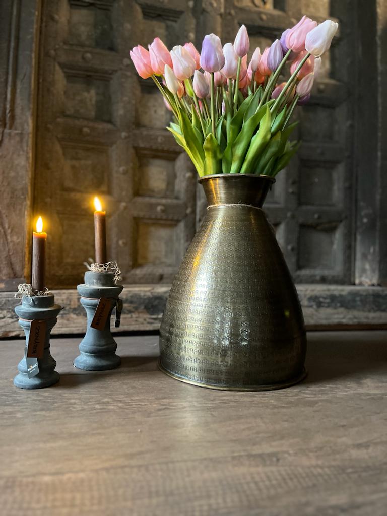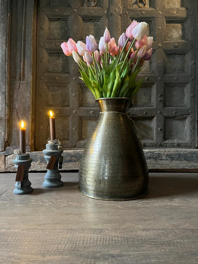 Kortom, de metalen Goudkleurige Vaas is niet alleen een leeg decoratief item, maar een canvas voor jouw creativiteit. Vul het met kunsttulpen, en je hebt een prachtige symbiose van stijl en sfeer die je interieur naar een hoger niveau tilt. Het is een subtiele herinnering aan de schoonheid van de natuur, vereeuwigd in een schitterende vaas die een blijvende indruk achterlaat.