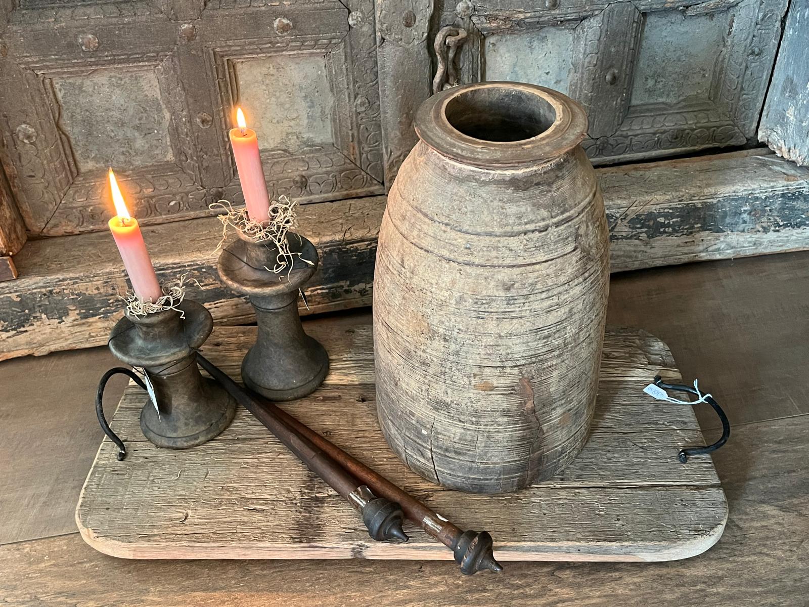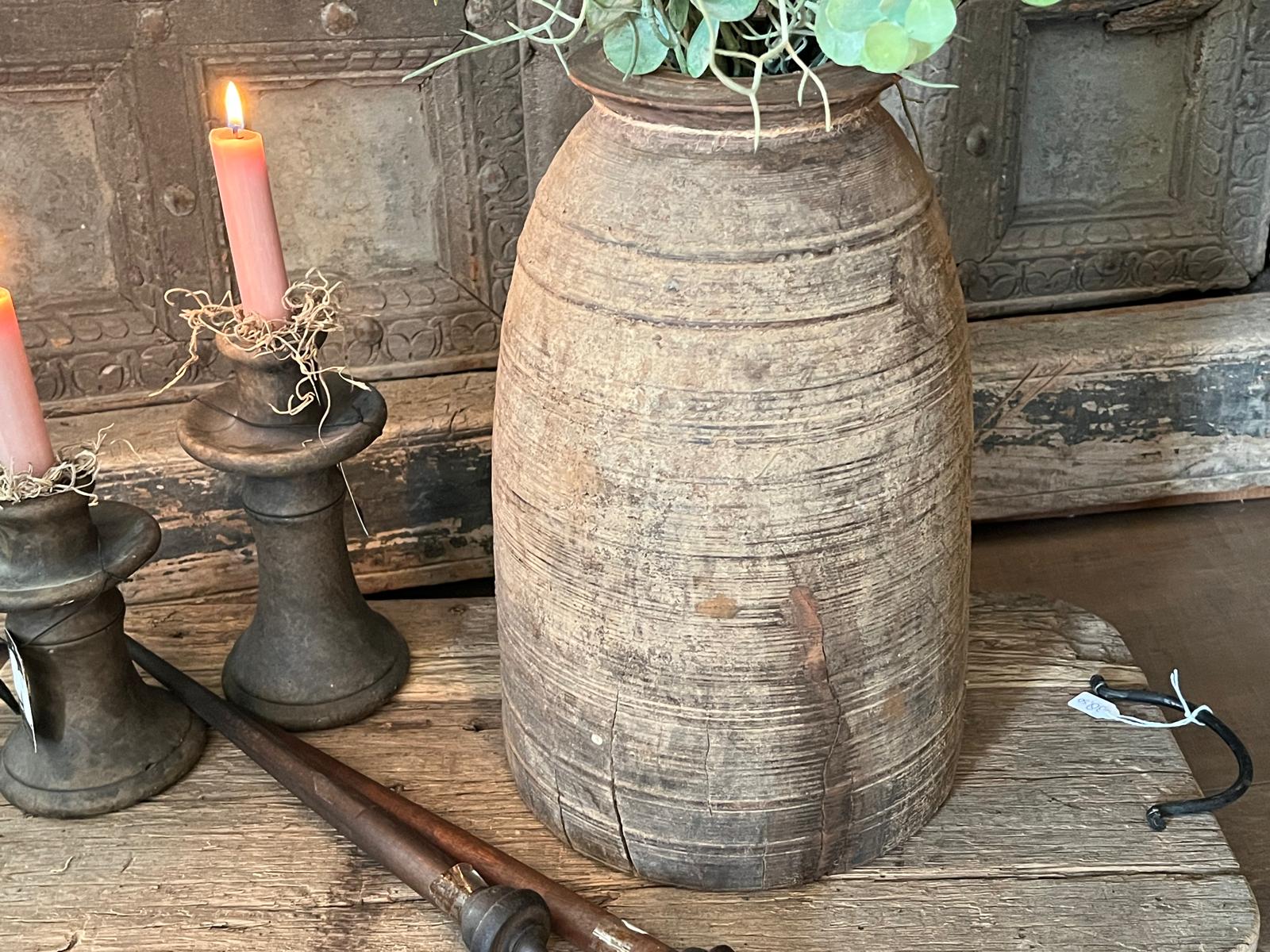 Welkom bij onze collectie van Nepalese Pot/Kruik-Vazen met deksel! Deze unieke kruiken zijn authentieke, oude waterkruiken uit Nepal, met een rijke geschiedenis en nu beschikbaar in een prachtige brown washed kleur. Perfect voor het toevoegen van een rustieke en landelijke sfeer aan jouw interieur! 🌿