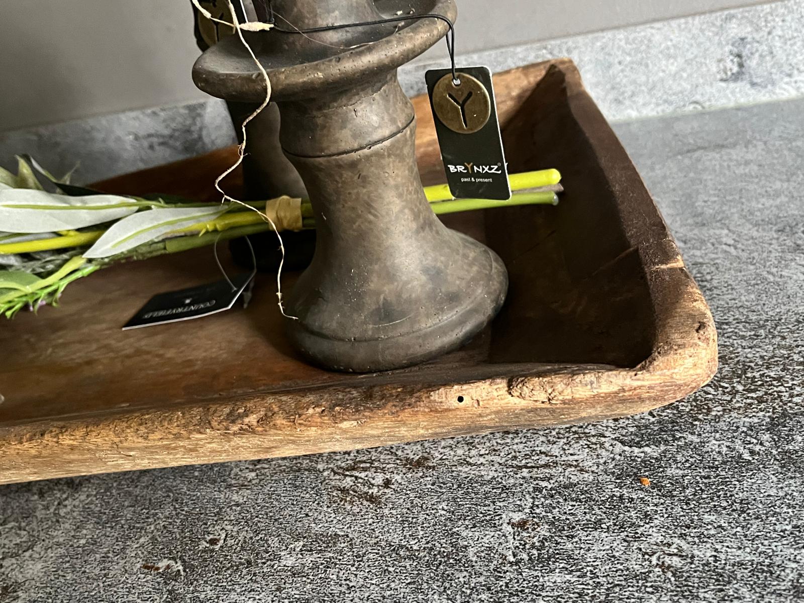 Dit authentieke houten dienblad heeft een afmeting van 30 x 55 cm (gemeten vanaf de bovenkant) en een hoogte van 5 cm. Door de natuurlijke veroudering van het hout heeft elk exemplaar een uniek karakter met eigen nerven, kleurnuances en subtiele gebruikssporen. Dit maakt het dienblad niet alleen decoratief, maar ook een waardevolle toevoeging aan jouw interieur.