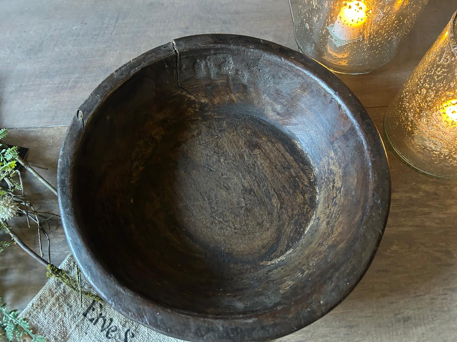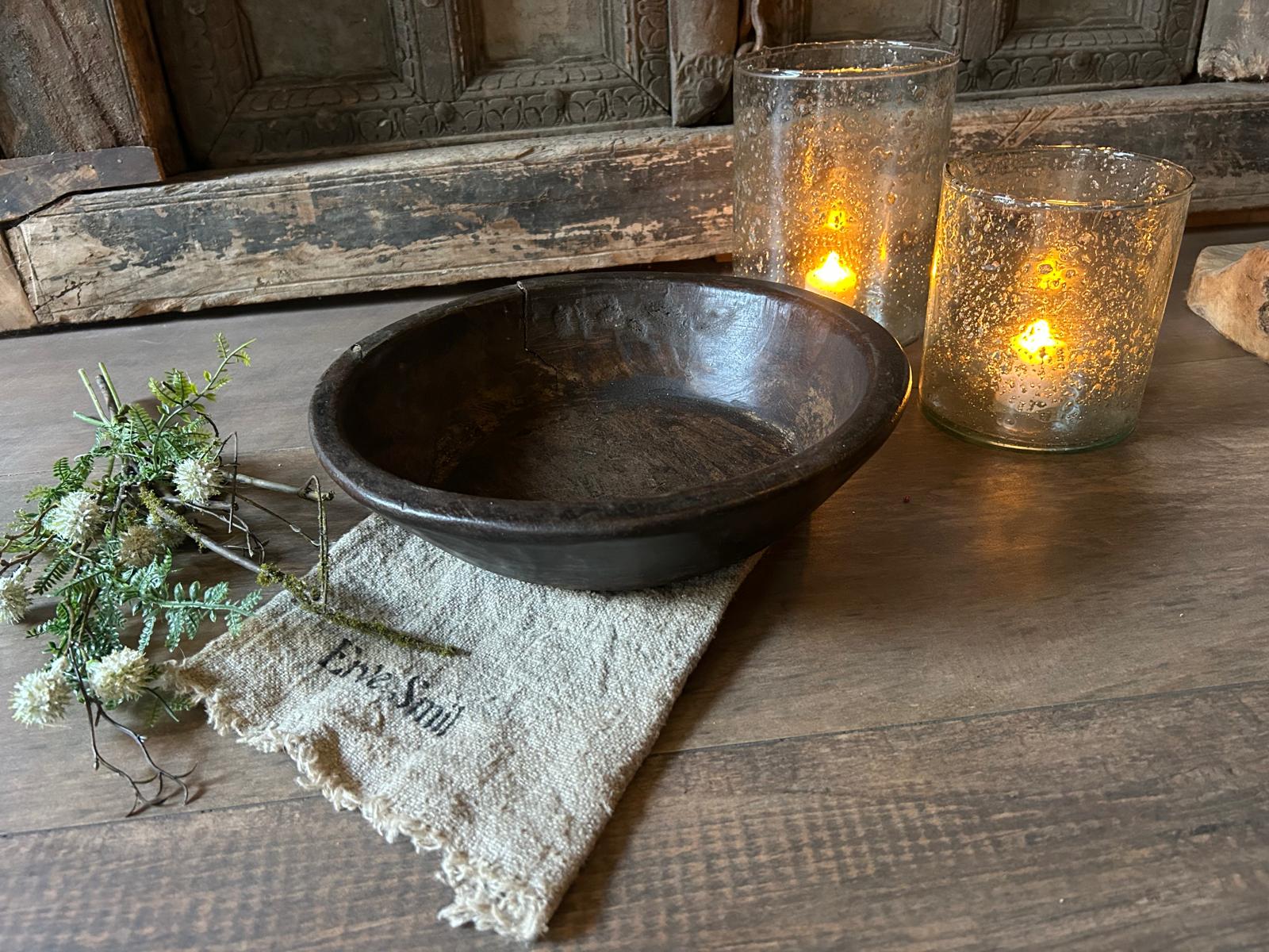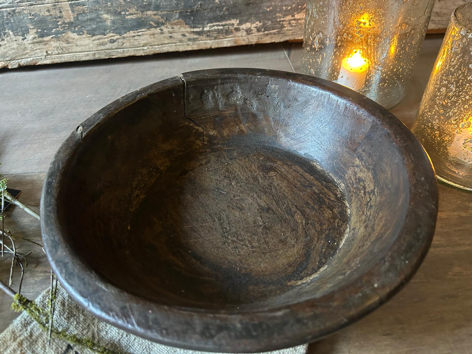 Met deze oude houten schaal haal je een decoratief en karaktervol woonaccessoire in huis dat warmte, rust en sfeer toevoegt aan je interieur.
