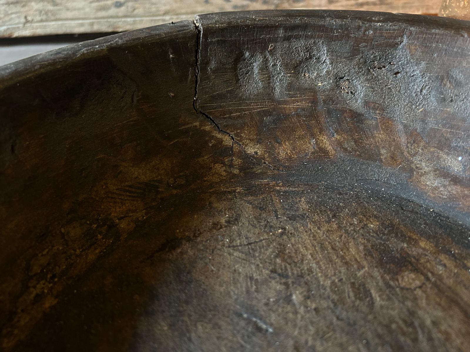 Breng warmte en authenticiteit in huis met deze prachtige oude houten schaal in donkerbruine kleur. Deze schaal is origineel en handgemaakt, waardoor elk exemplaar uniek is. De natuurlijke houtstructuur, kleine scheurtjes en het verweerde uiterlijk geven de schaal zijn karakteristieke en robuuste uitstraling.