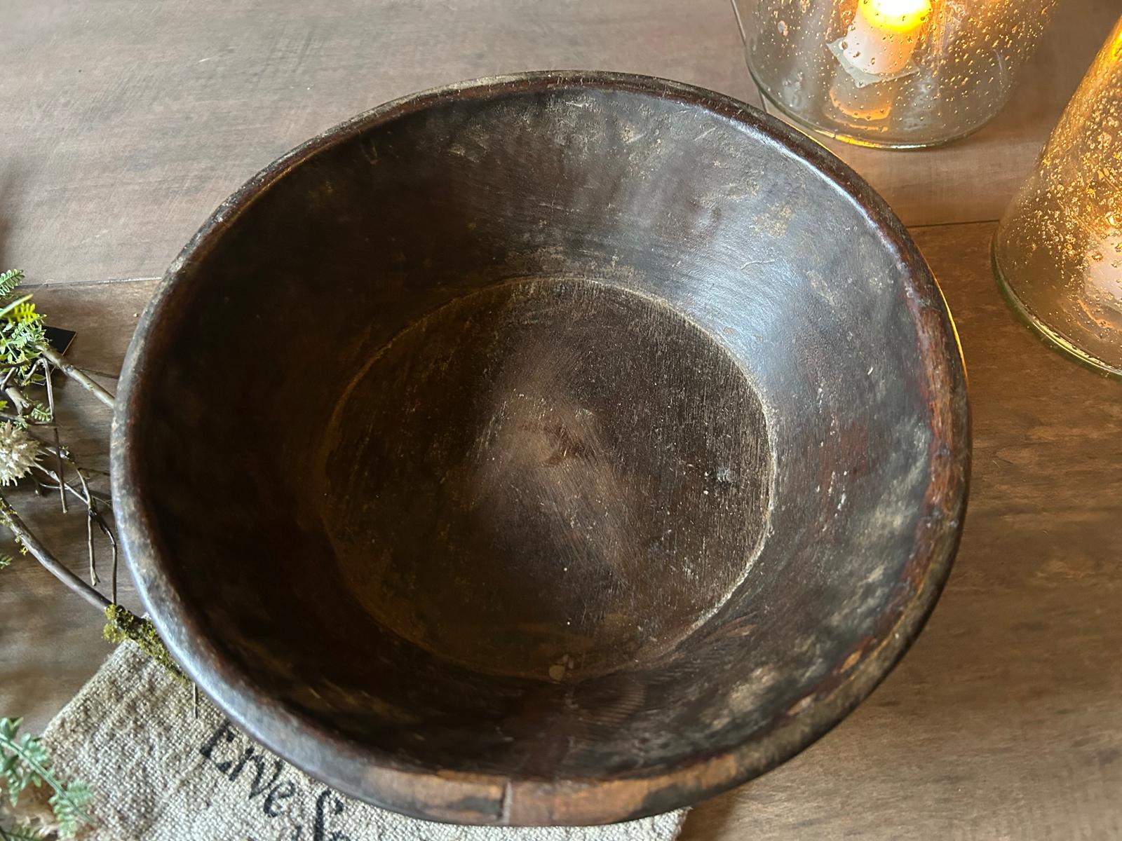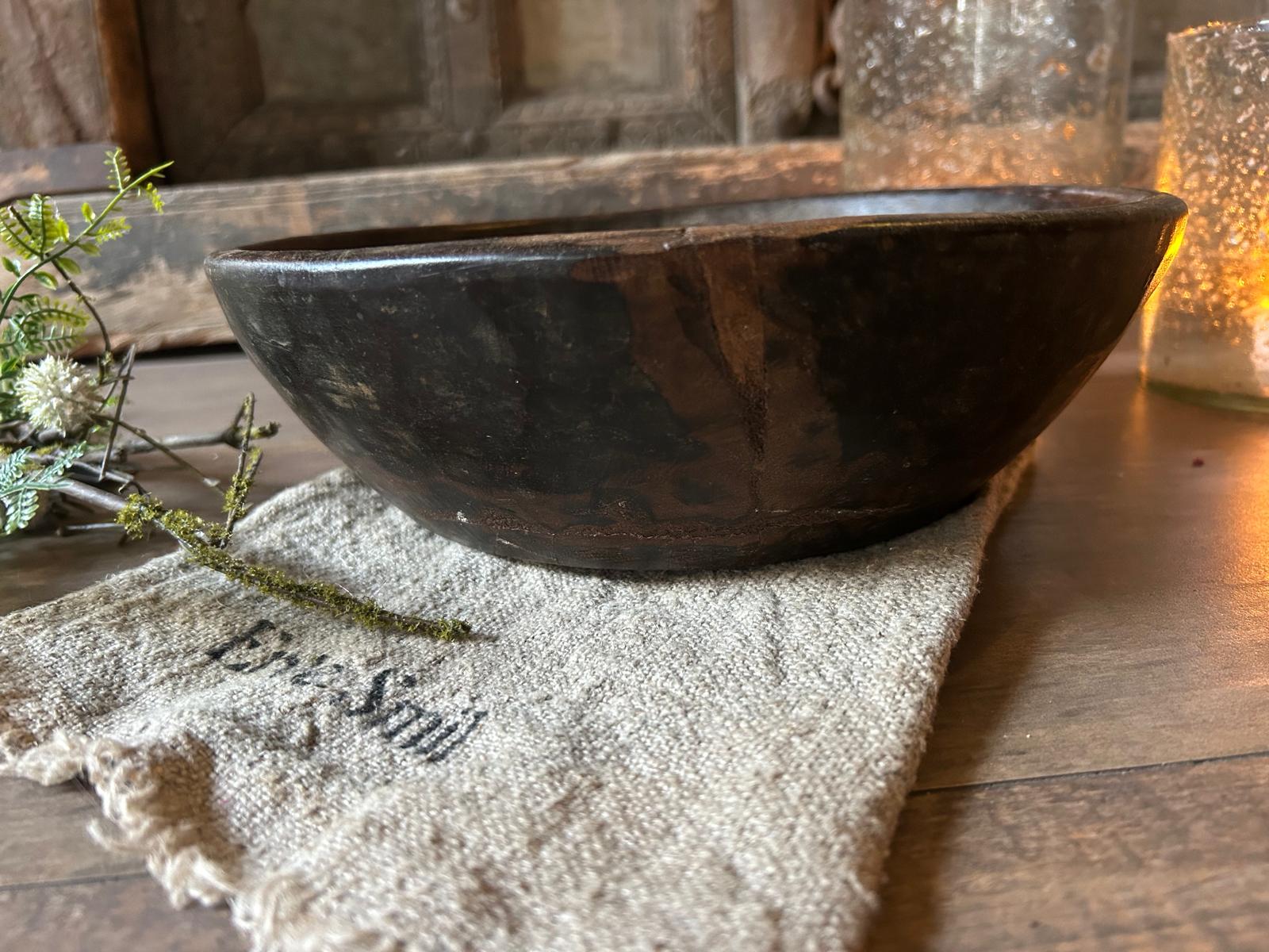 Met deze oude houten schaal haal je een decoratief en karaktervol woonaccessoire in huis dat warmte, rust en sfeer toevoegt aan je interieur.