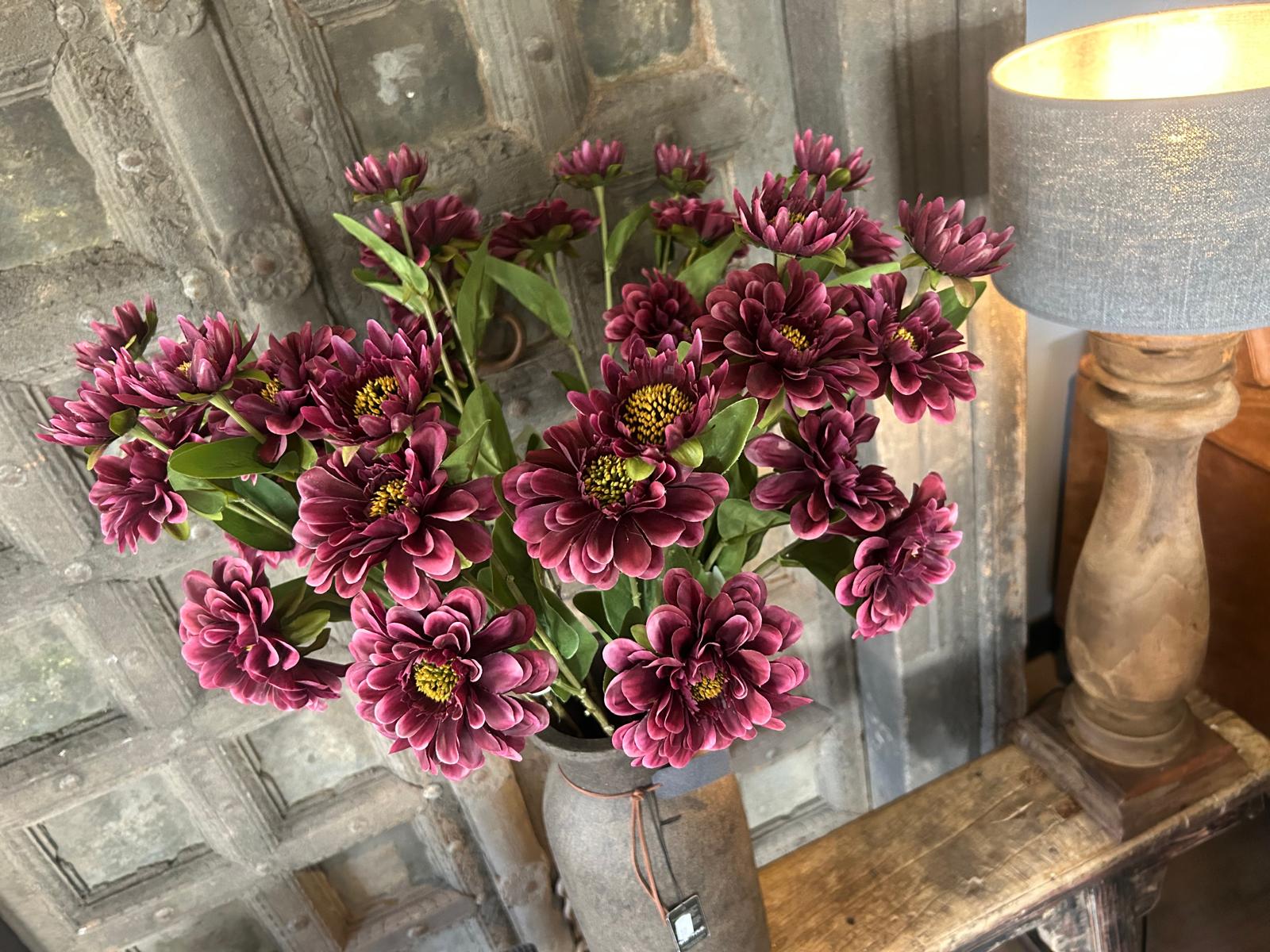 Mix bijvoorbeeld meerdere voorjaarsbloemen of combineer de Zinia tak met groene kunsttakken voor een speels en natuurlijk effect in je woonkamer, keuken of hal.