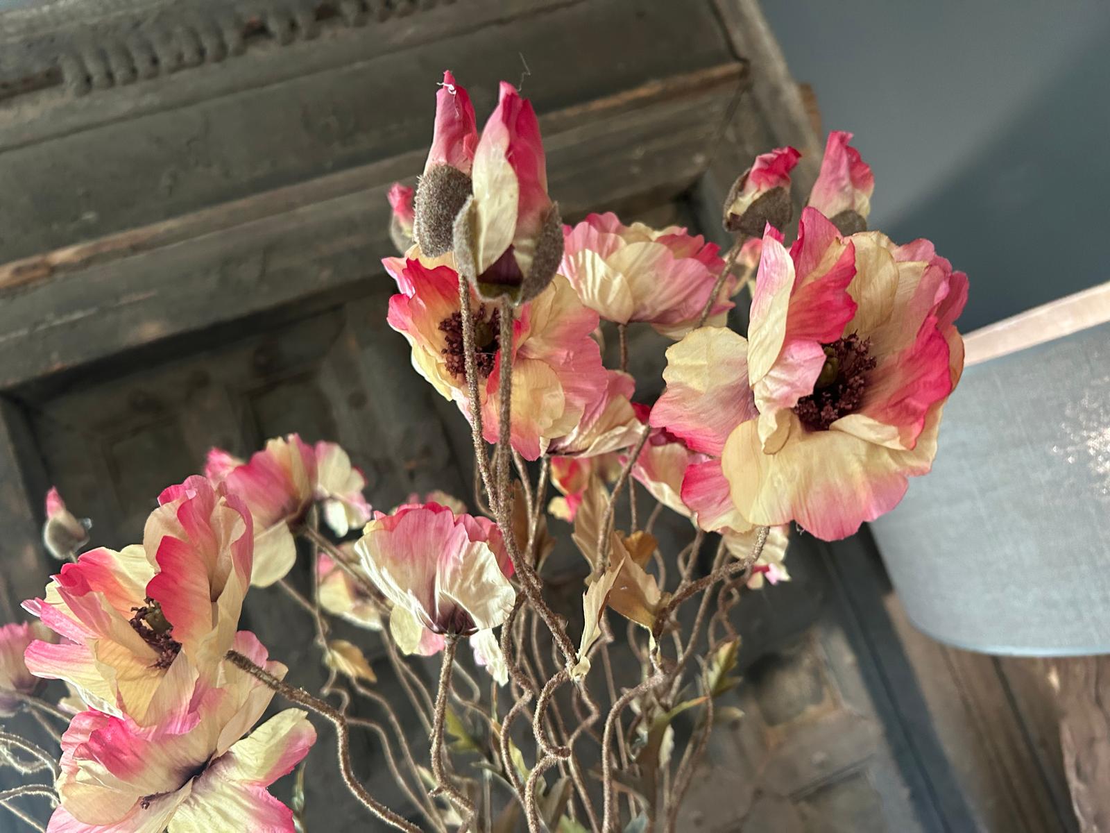 Ben je op zoek naar een realistische kunstbloem 100 cm, een landelijke decoratie tak, een roze kunstbloem voor in een vaas of een onderhoudsvrije kunsttak van A-kwaliteit? Dan is de Sylxz Poppy Twist Fading Pink een perfecte keuze.