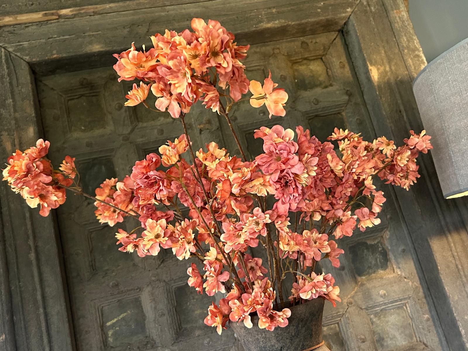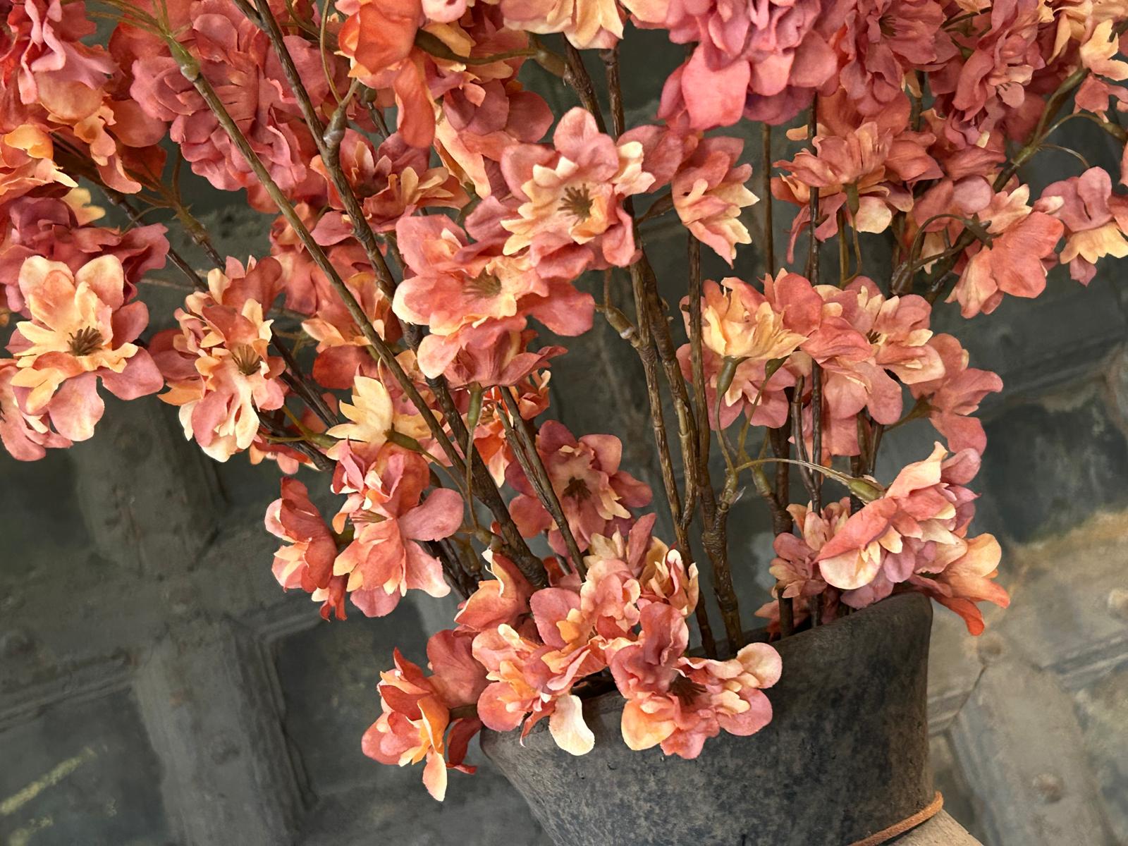 Stylingtip: Combineer de Prunus Sakura Orange met andere Sylxz decoratietakken, zoals witte of rode takken, voor een volumineuze en sfeervolle herfstdecoratie. Perfect voor op de eettafel, vensterbank of als decoratieve toevoeging aan je boeketten en bloemstukken.