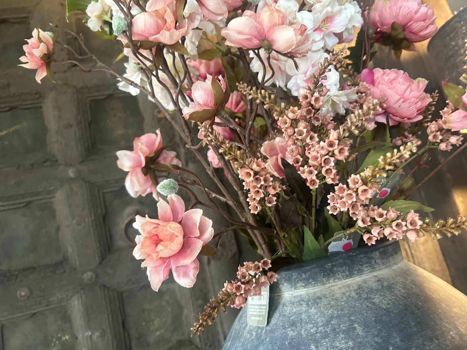 De zachte roze tinten en natuurlijke uitstraling maken dit boeket perfect voor een landelijke sfeer in huis. De verschillende hoogtes en structuren zorgen voor een speels en levendig effect.