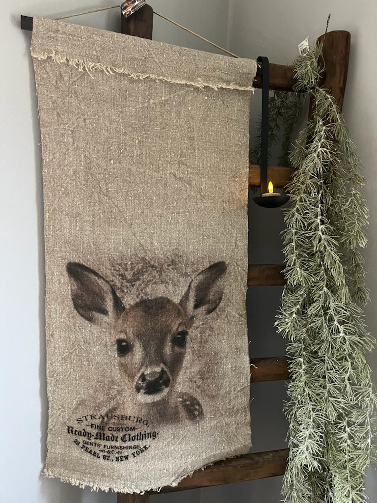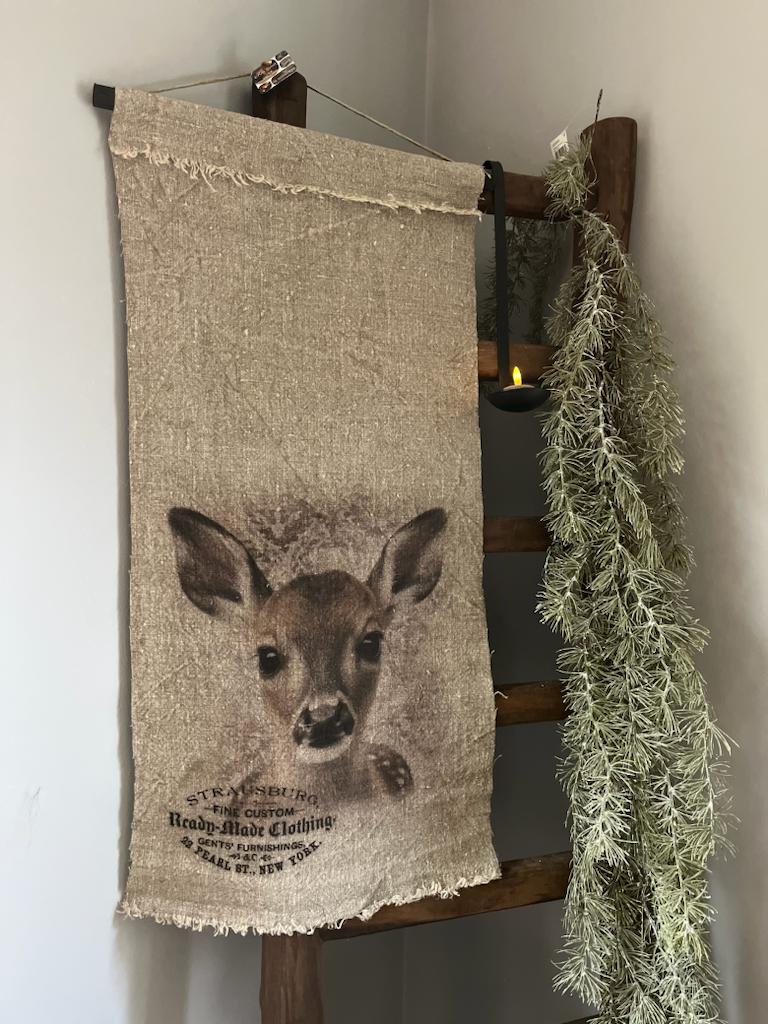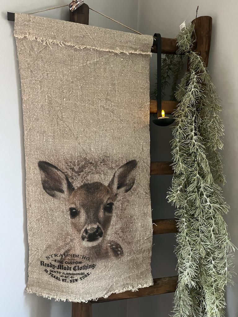 Wanddoek Rendier,stoer grof shabby linnen wand doek met een prachtige opdruk van een Rendier.