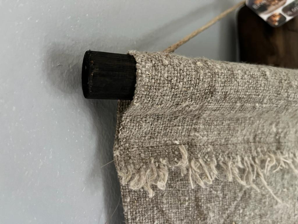 Ophangen d.m.v houten roede met vlas touw.