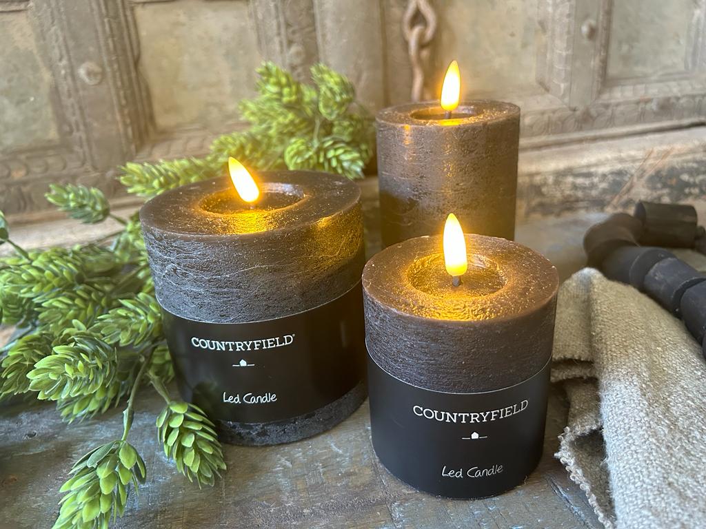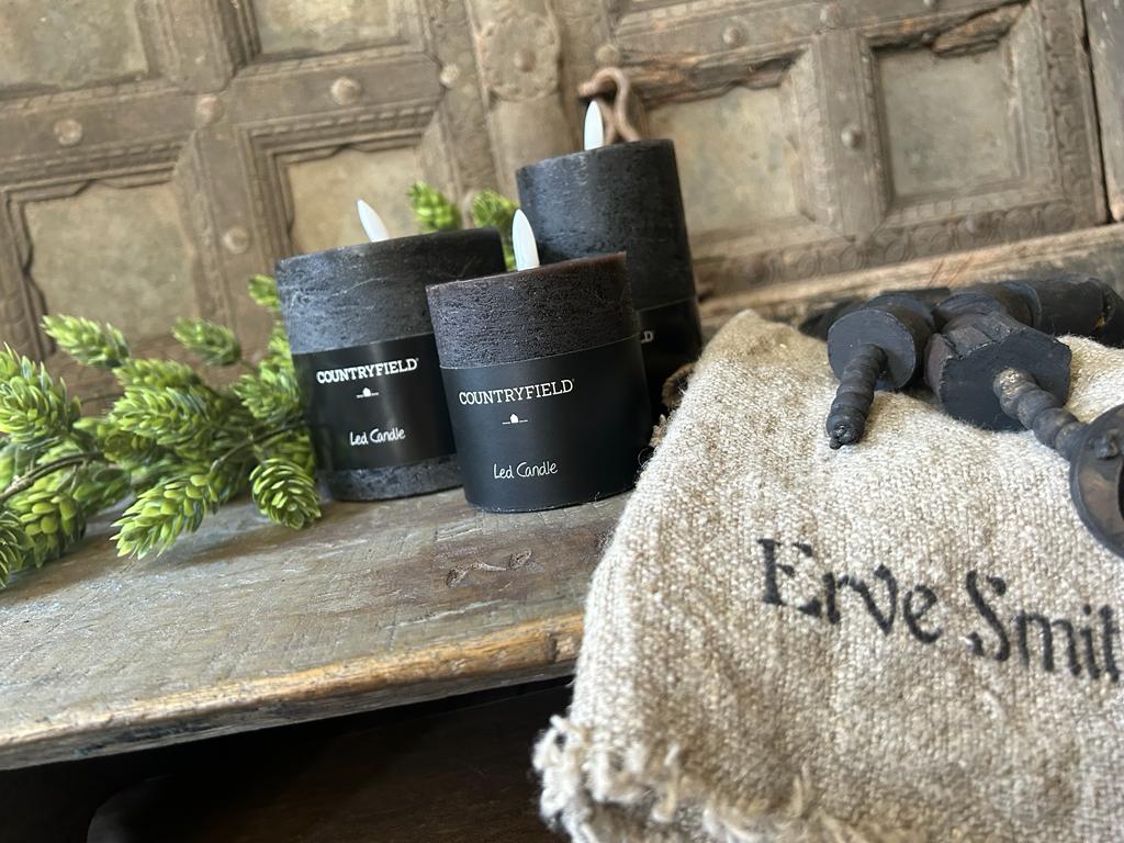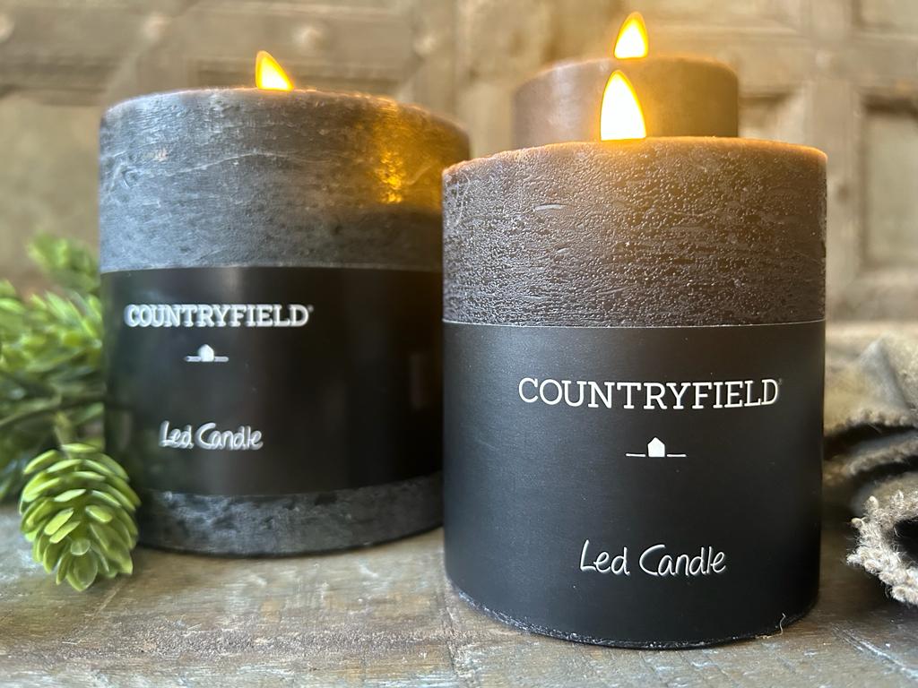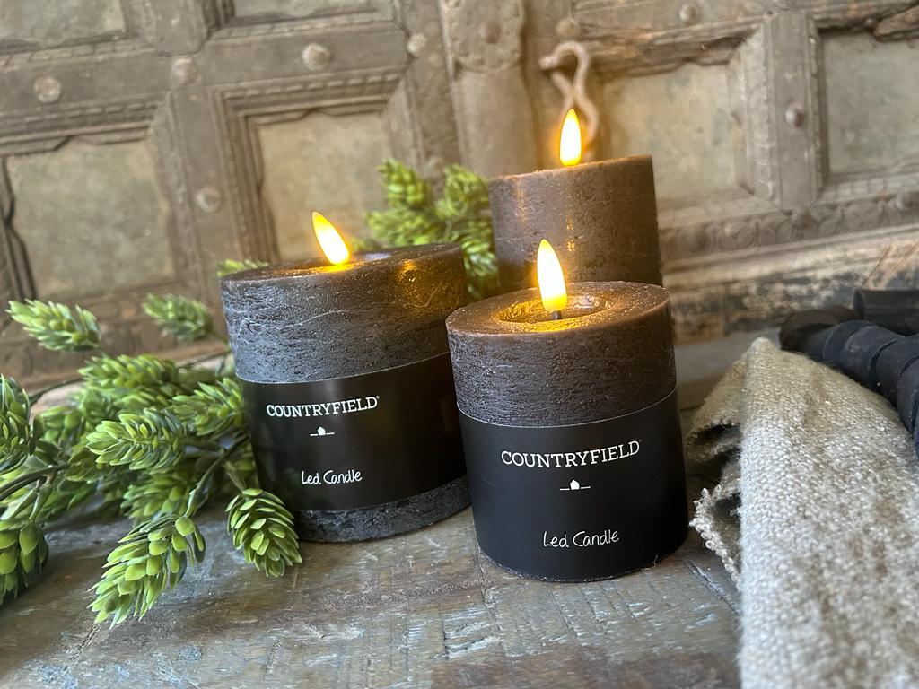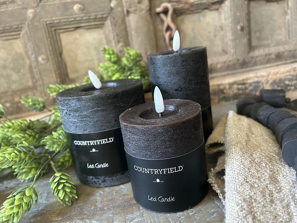 Voordelen van de Countryfield LED stompkaars Zwart (7,5 cm diameter & 15 cm hoog)